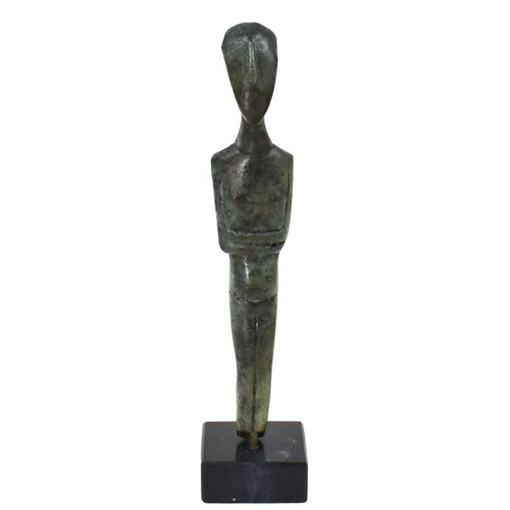 Cycladic art encompasses the visual art of the ancient Cycladic civilization, which flourished in the islands of the Aegean Sea from 3300 - 2000 BCE. Along with the Minoans and Mycenaeans, the Cycladic people are counted among the three major Aegean cultures. Cycladic art with its anthropocentric character - expressed through perfection and proportion in form, simplicity, and reduction to the very essential. It is an art that has strongly influenced early 20th century sculpture.