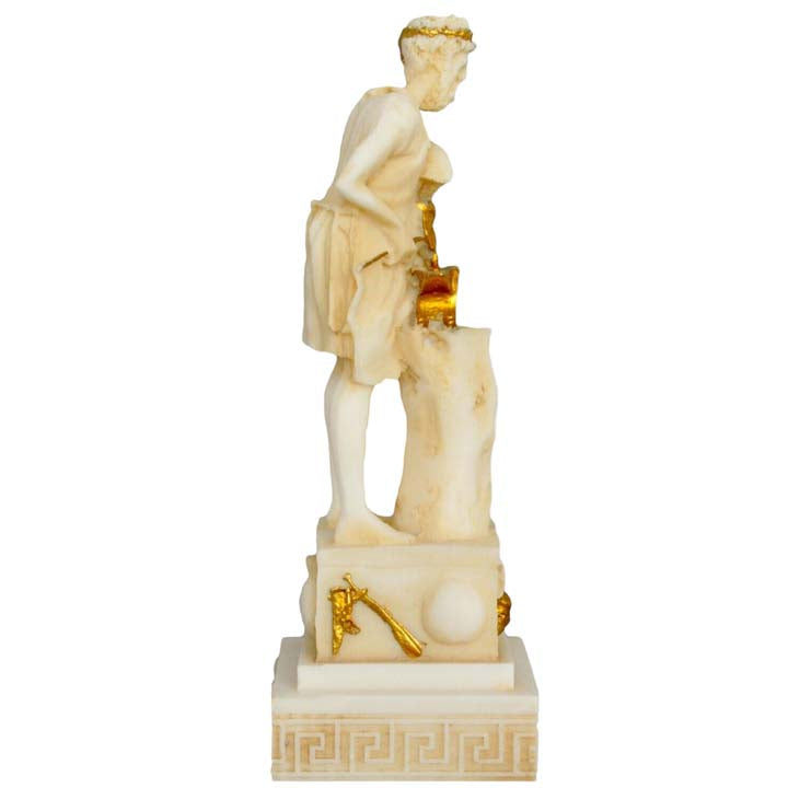 Hephaestus is the Greek god of blacksmiths, craftsmen, artisans, sculptors, metals, metallurgy, fire and volcanoes. Hephaestus Roman equivalent is Vulcan.  As a smithing god, Hephaestus made all the weapons of the gods in Olympus. He served as the blacksmith of the gods, and was worshiped in the manufacturing and industrial centers of Greece, particularly Athens.