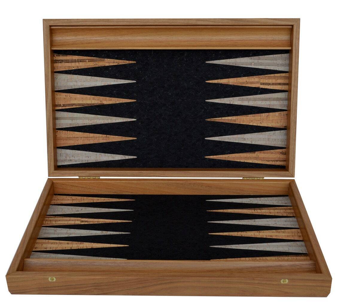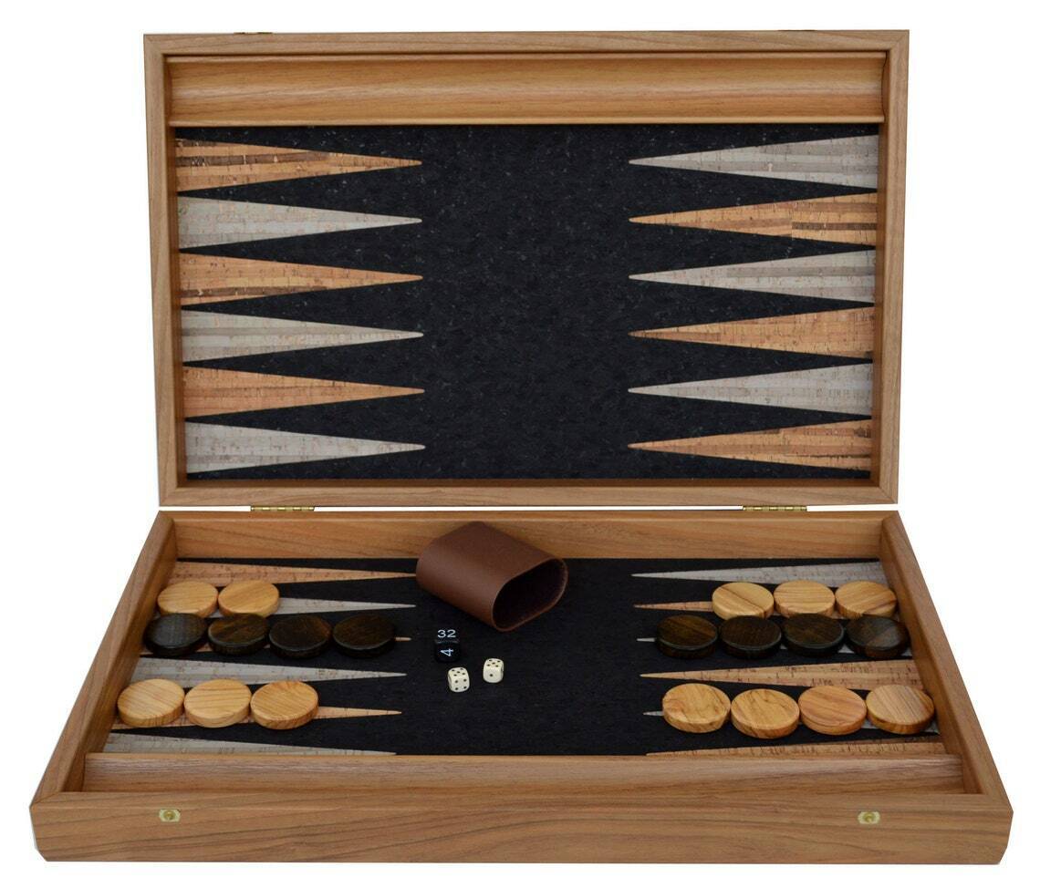 This is a beautiful 19" backgammon set handmade by Manopoulos skilled craftsmen using natural cork. The combination of top quality and good prices made Manopoulos company world known for their products. Do not expect "perfection" as if this backgammon set was not mass produced from a machine like many are, but rather, a unique piece of art.