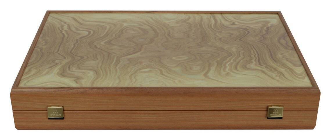 This is a beautiful 19" backgammon set handmade by Manopoulos skilled craftsmen using olive wood. The combination of top quality and good prices made Manopoulos company world known for their products. Do not expect "perfection" as if this backgammon set was not mass produced from a machine like many are, but rather, a unique piece of art.