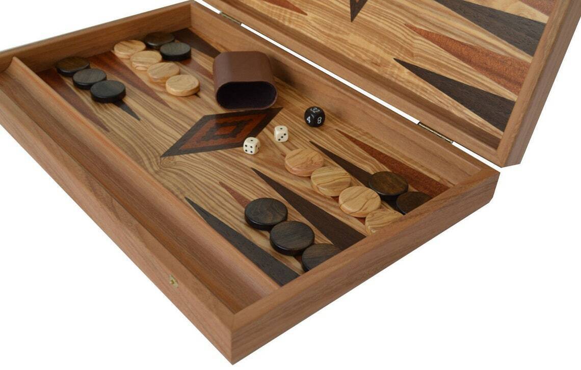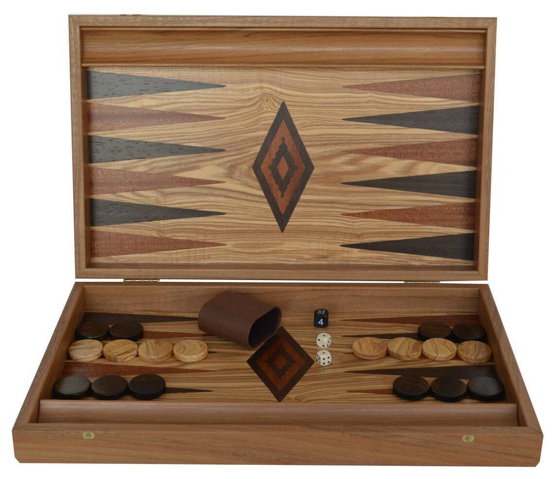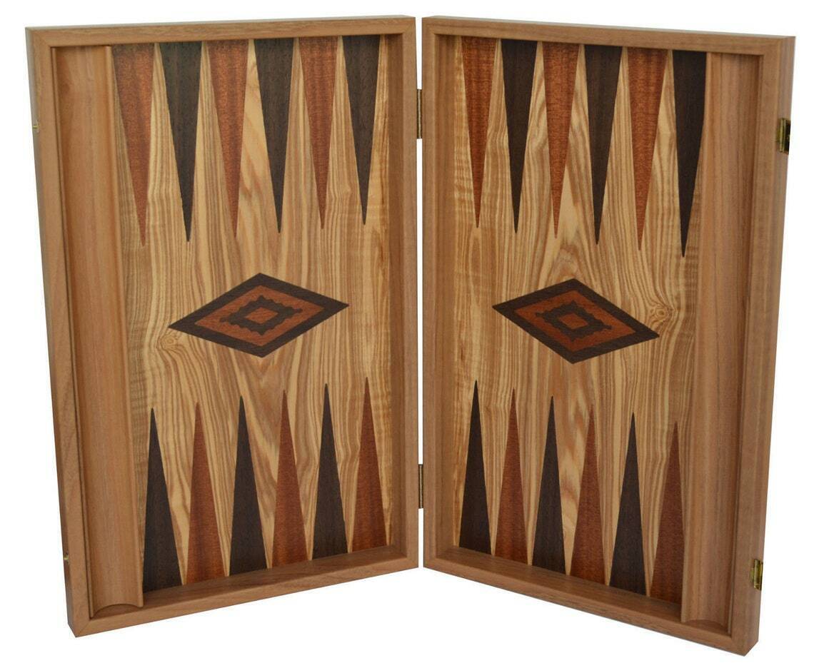 This is a beautiful 19" backgammon set handmade by Manopoulos skilled craftsmen using olive wood. The combination of top quality and good prices made Manopoulos company world known for their products. Do not expect "perfection" as if this backgammon set was not mass produced from a machine like many are, but rather, a unique piece of art.
